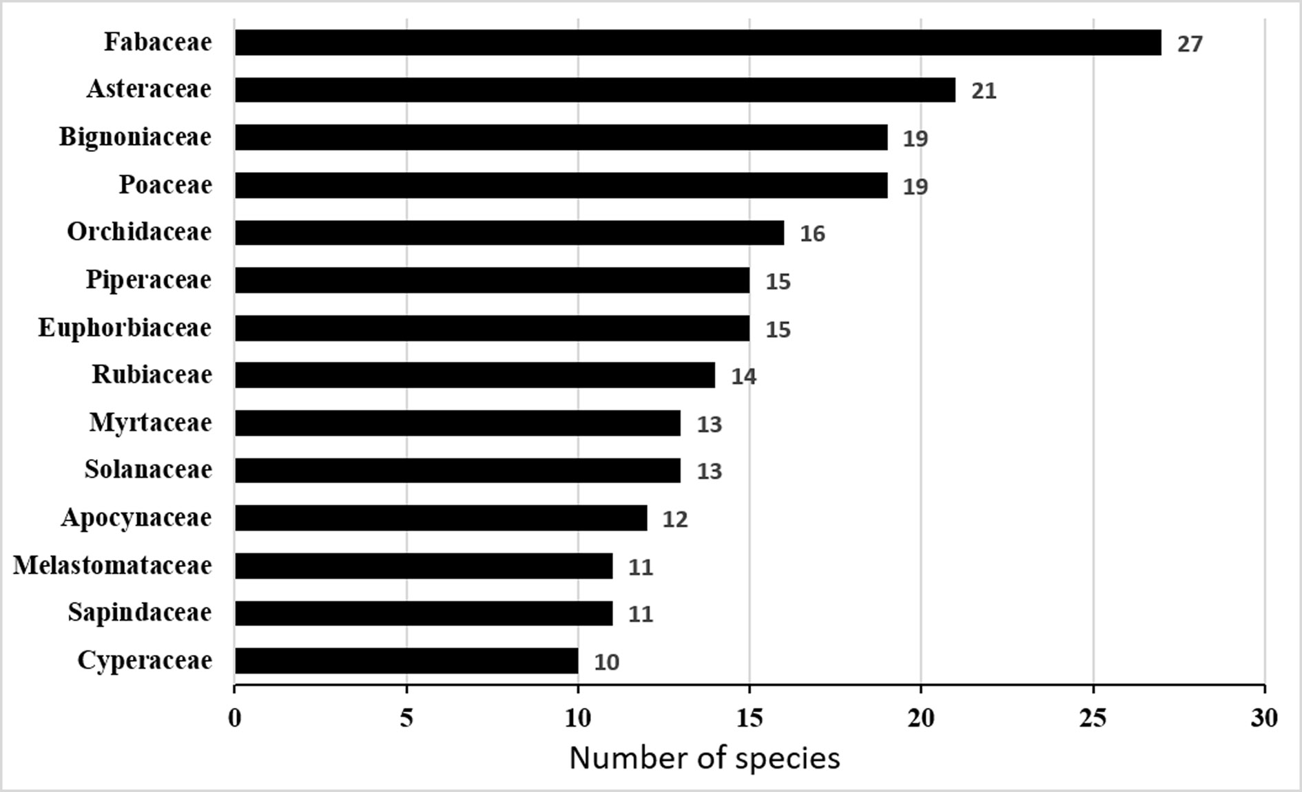 This study catalogued the vascular species found in the second largest continuous remnant of Seasonal Semideciduous Forest in the State of Paraná. A total of 425 species distributed among 295 genera and 101 families were identified. The most representative families are Fabaceae (27 species), Asteraceae (21), Bignoniaceae (19), Poaceae (19) and Orchidaceae (15). Two species are unique records in the State of Paraná, in the study area: Bulbophyllum rupicolum Barb.Rodr. (Orchidaceae) and Heladena multiflora (Hook. & Arn.) Nied. (Malpighiaceae). The predominant life forms are herbs and trees, and terrestrial plants represented the majority of species. We recorded 11 exotic species. It is a large remnant and contains high specific diversity for the region, with a quarter of the species listed for the Seasonal Semideciduous Forest of the State of Paraná.