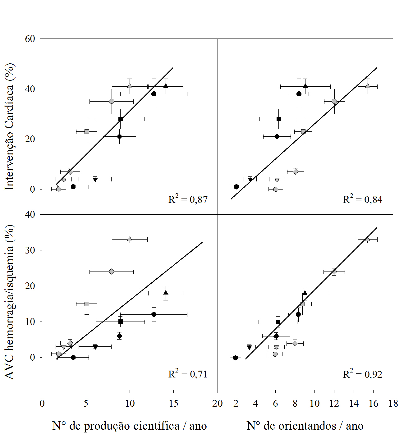 Os docentes de pós-graduação apresentaram aumento nos pedidos de licenças médicas, principalmente por sintomas ou sequelas de doenças cardiovasculares. Com isso, o objetivo deste trabalho foi, por meio de um questionário direcionado a professores de pós-graduação, quantificar entre eles quantos realizavam atividades físicas frequentes, dietas balanceadas e visitas médicas, e outros fatores, e comparar isso com: i) a ocorrência de intervenções cardíacas, doenças coronarianas e acidentes vasculares cerebrais; ii) o número de produção científica e o número de orientando médio por ano. Foram respondidos e analisados 540 questionários. A hipótese deste trabalho foi aceita, ou seja, quanto maiores o número de produção científica e o número de orientandos em média por ano, maiores foram as ocorrências médias de intervenções cardíacas, doenças coronarianas e os acidentes vasculares cerebrais (hemorrágico e isquêmico) em docentes de pós-graduação, principalmente, pela falta de dieta equilibrada e balanceada, de atividades físicas supervisionadas regularmente, e visitas médicas frequentes, justificados pela excessiva carga horária fora do expediente, para se manter os indicadores de qualidade dos cursos de pós-graduação e de seus currículos atualizados.