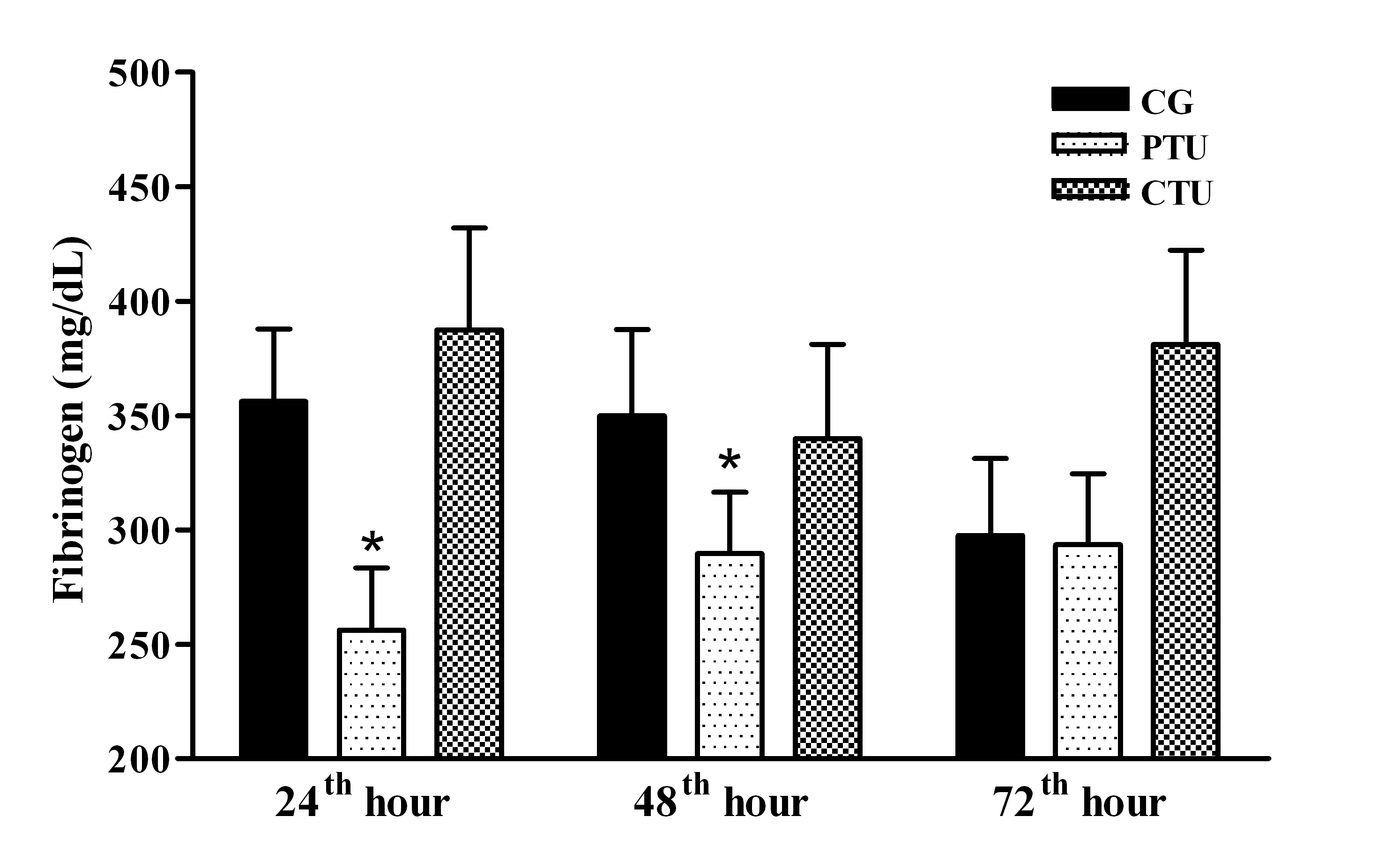 This study investigated the effects of ultrasound therapy on haematological dynamics and plasma fibrinogen during the inflammatory phase of muscle injury. Forty-eight male Wistar rats were divided into control group (CG), continuous ultrasound treated group (CTU)and pulsed ultrasound (PTU). Animals were subjected to surgical incision. A transverse lesion was made in the biceps femoris muscle (50%). CTU (1.0 MHz) was applied at 12-hour intervals on the lesion, for three days, with 0.4 W cm-2 and three minutes of duration (six applications in the total). PTU was applied in the pulsed mode 20% (2 ms on/8 ms off), maintaining the other parameters. Fibrinogen, white and red blood cells were analyzed in the 24th, 48th and 72nd hour after the injury. PTU has reduced fibrinogen levels by 20% at the 24thh and by 30% at the 48thh (p < 0.001) and haemoglobin reduction at the 72nd hour (p < 0.001), which had already occurred during the 2nd collection in the other groups. CTU favoured erythrocyte reduction at the 48th h (p = 0.003). PTU presented an anti-inflammatory effect due to plasma fibrinogen reduction, and CTU favored haemorrhage due to the reduction of erythrocytes when applied in the first 72 hours after muscle injury.