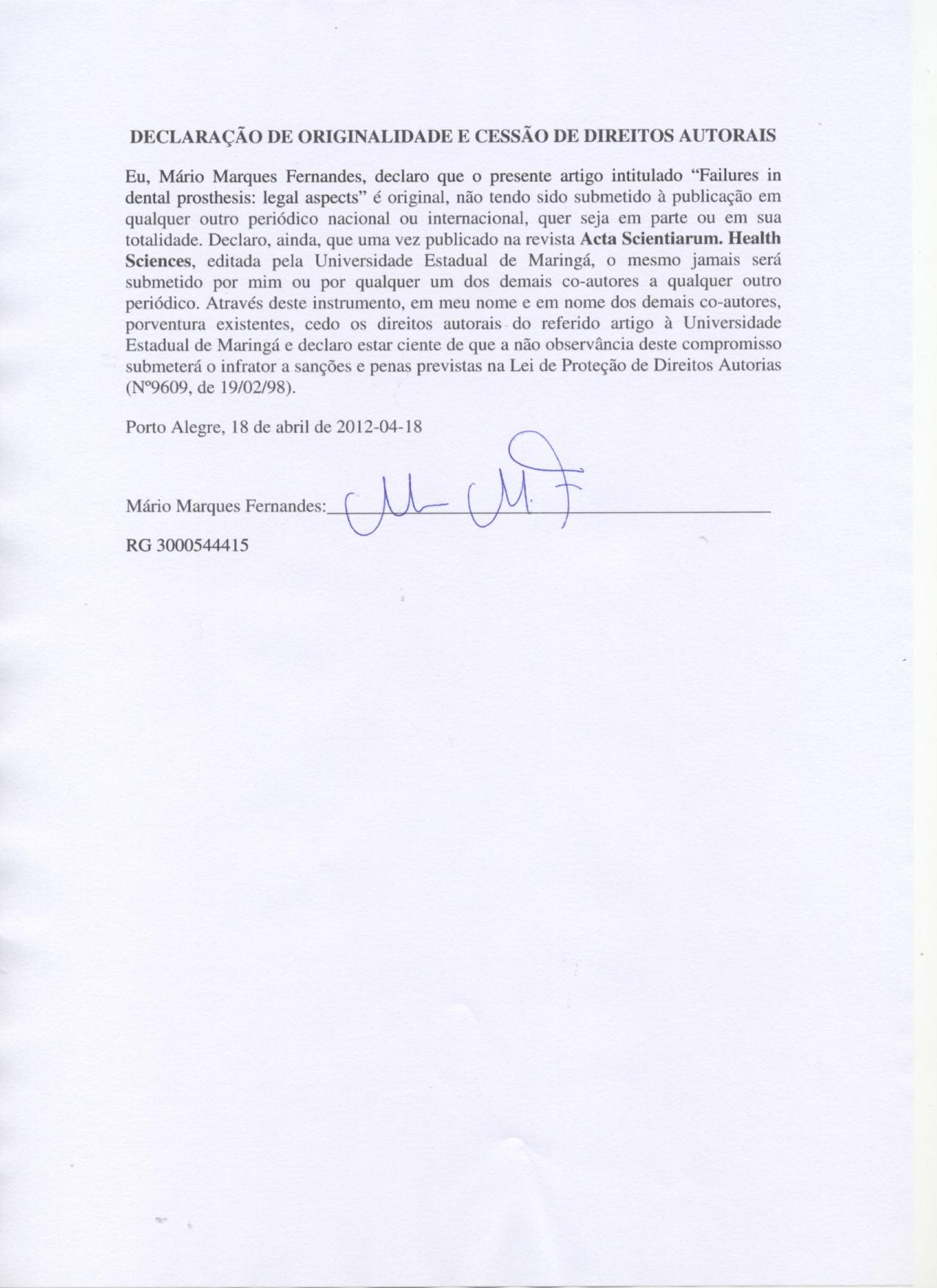 Declaro que o presente artigo é original, não tendo sido submetido à publicação em qualquer outro periódico nacional ou internacional, quer seja em parte ou em sua totalidade.