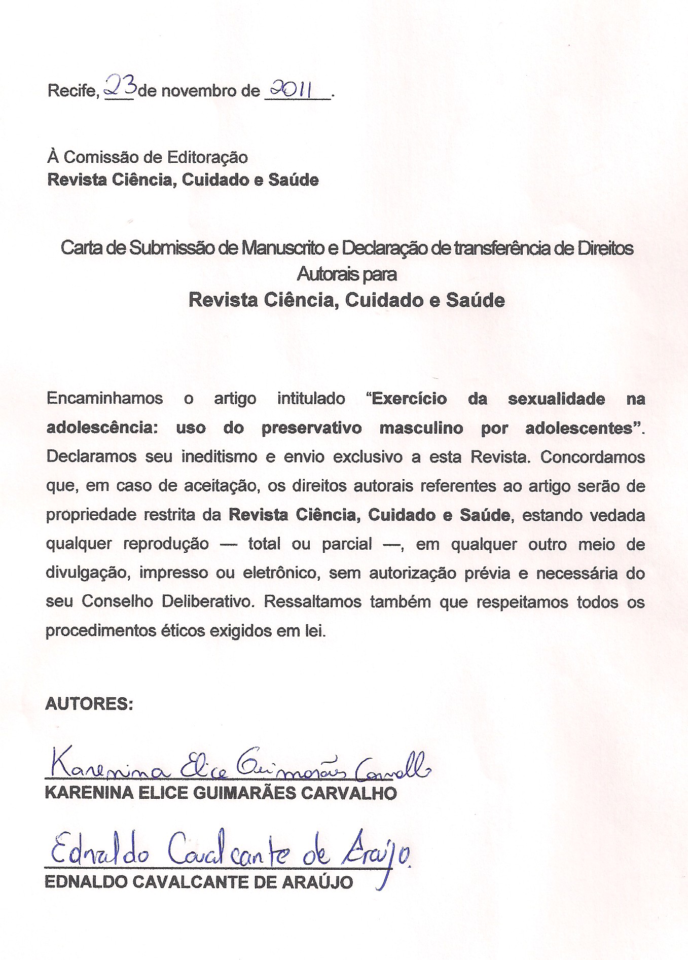 <b>Exercício da sexualidade na adolescência: uso do preservativo masculino por adolescentes / Exercise of adolescent sexuality: the use of male condom by teenagers</b> DOI: 10.4025/cienccuidsaude.v12i4.15323