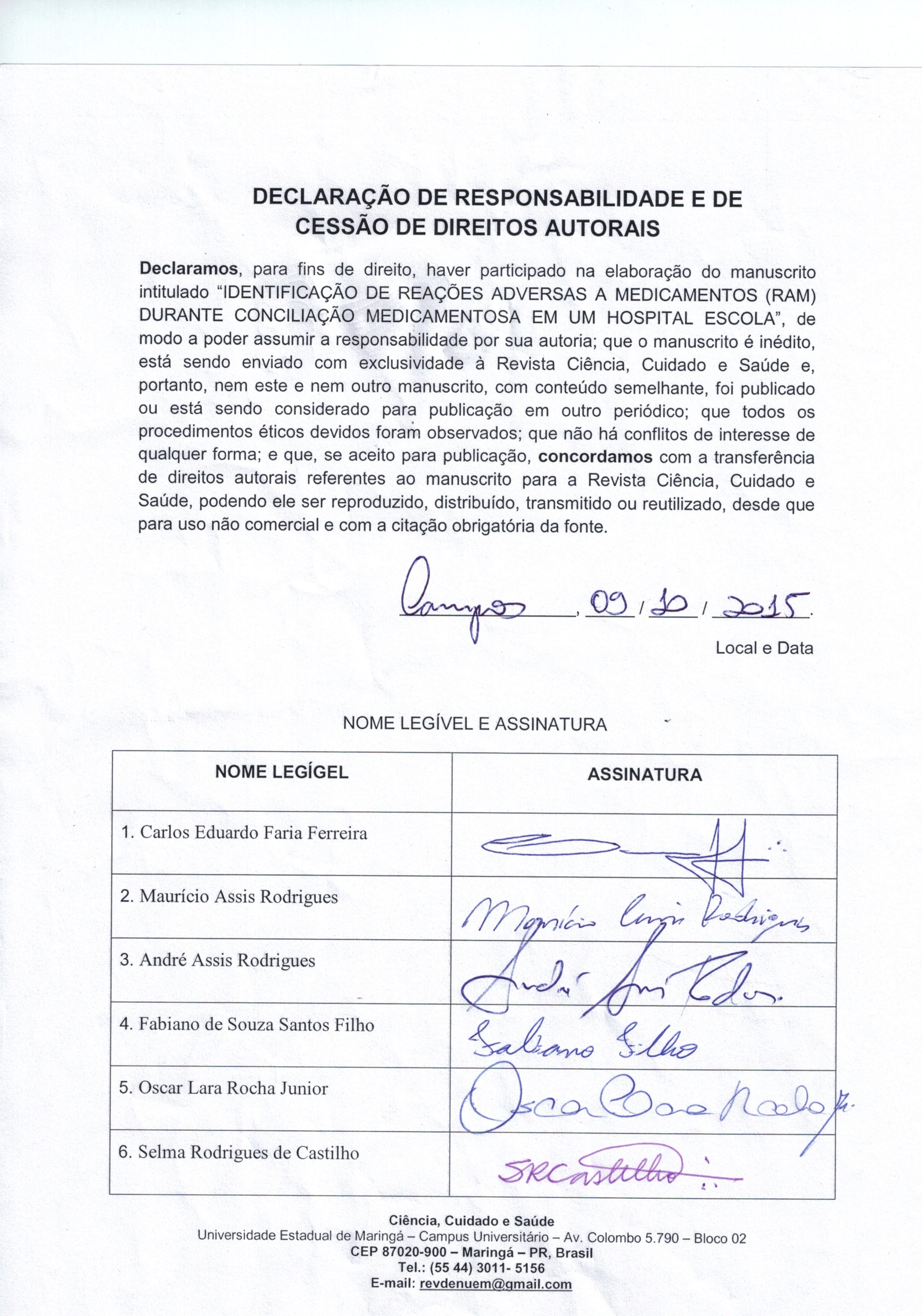 <b>Identificação de reações adversas a medicamentos (RAM) durante conciliação medicamentosa em hospital escola/ Identification of adverse drug reactions (ADR) for medication conciliation in a teaching hospital<b>
