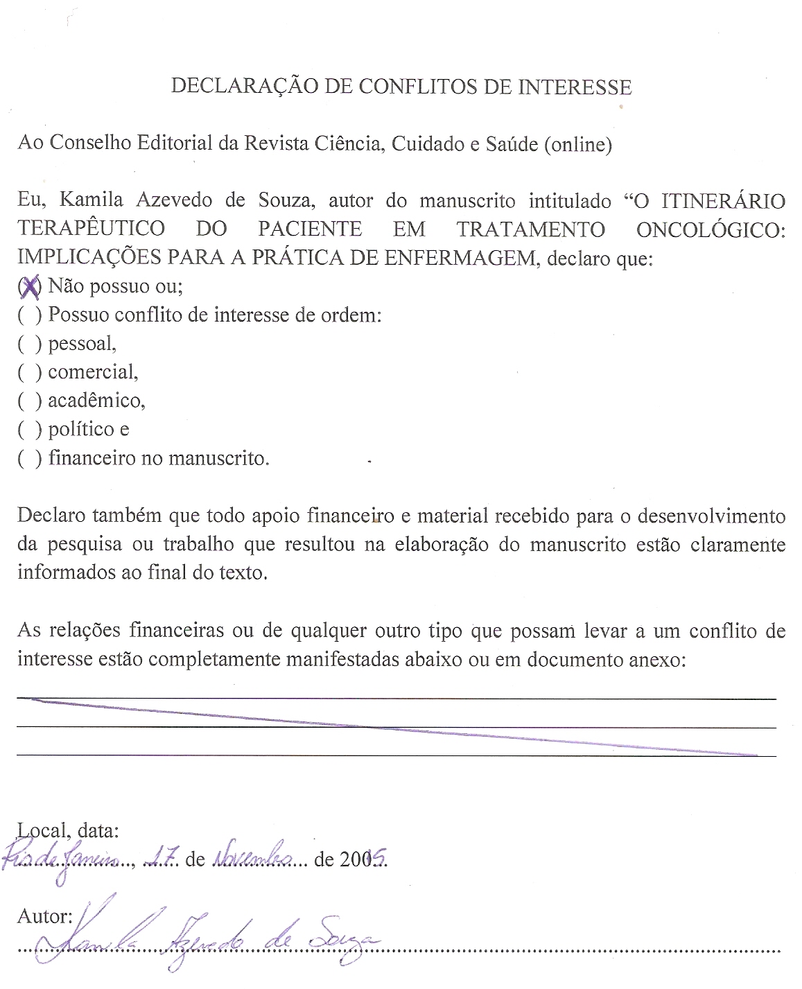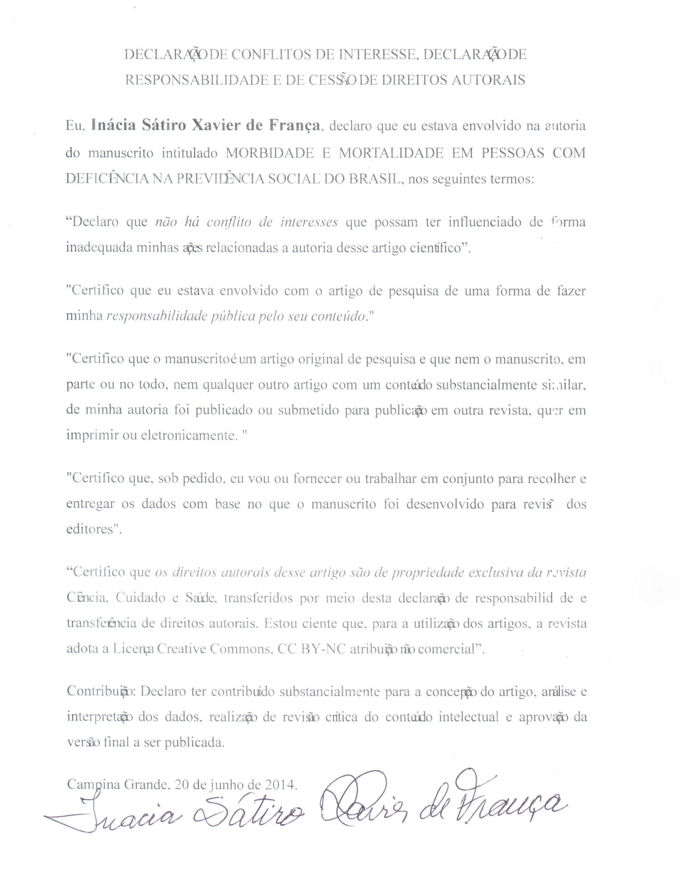 - DECLARAÇÃO DE CONFLITOS DE INTERESSE, DECLARAÇÃO DE RESPONSABILIDADE E DE CESSÃO DE DIREITOS AUTORAIS (Português (Brasil))