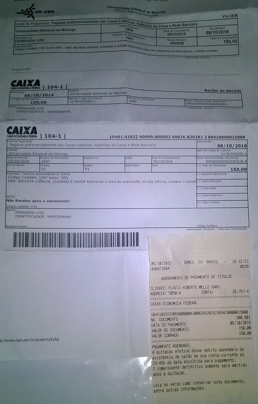 - Comprovante de pagamento de taxa submissão