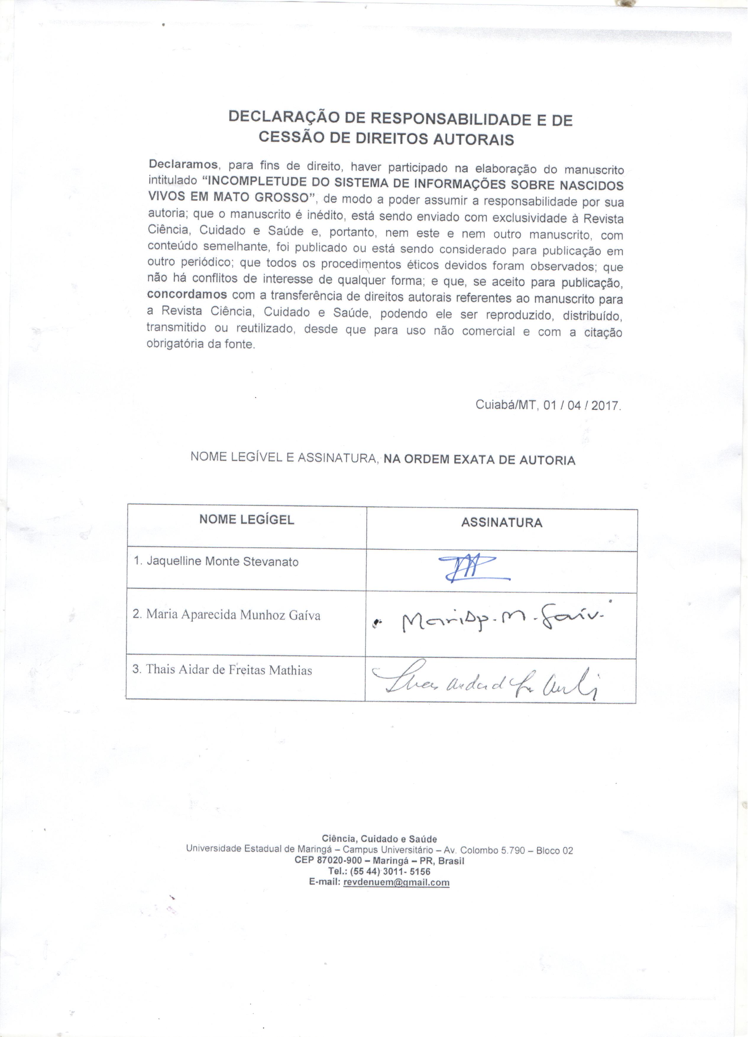 - Declaração de responsabilidade e de cessão de direitos autorais