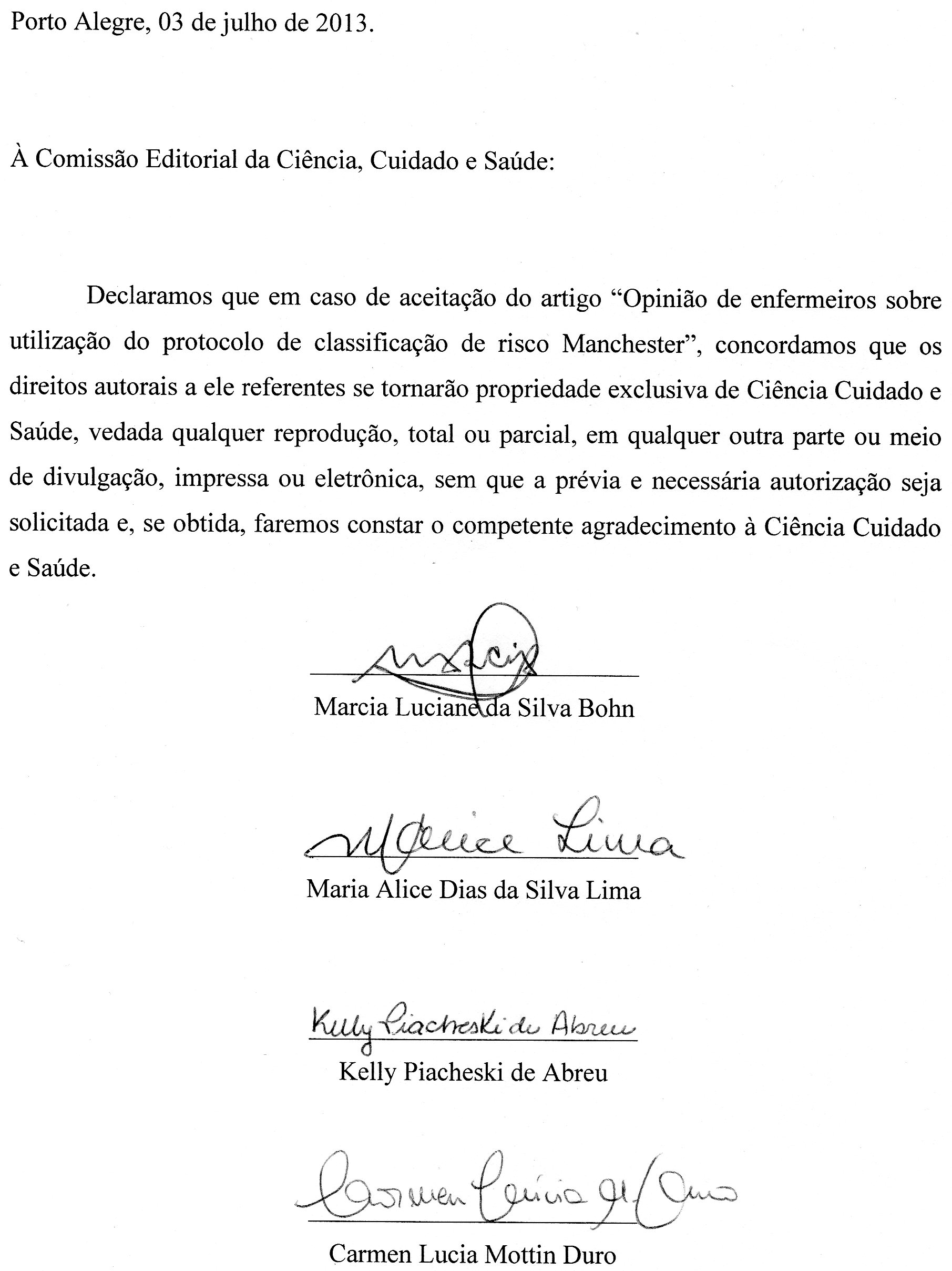 Percepção de enfermeiros sobre utilização do protocolo do sistema de classificação de risco manchester/ Nurses’ perception on the use of the manchester risk classification system protocol