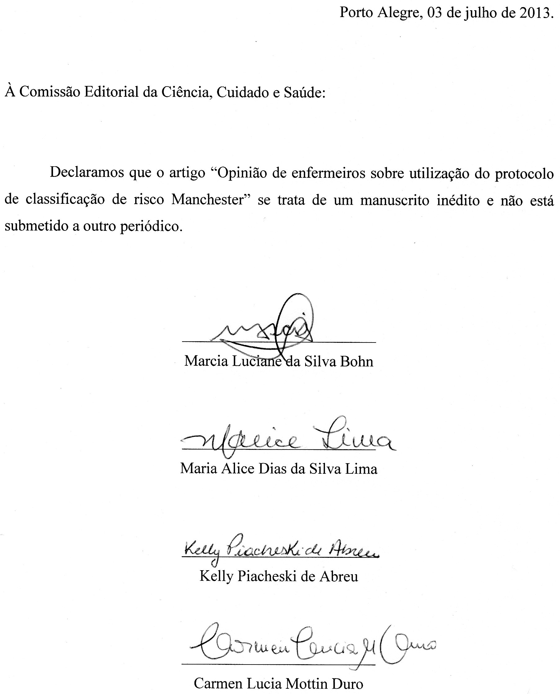 Percepção de enfermeiros sobre utilização do protocolo do sistema de classificação de risco manchester/ Nurses’ perception on the use of the manchester risk classification system protocol