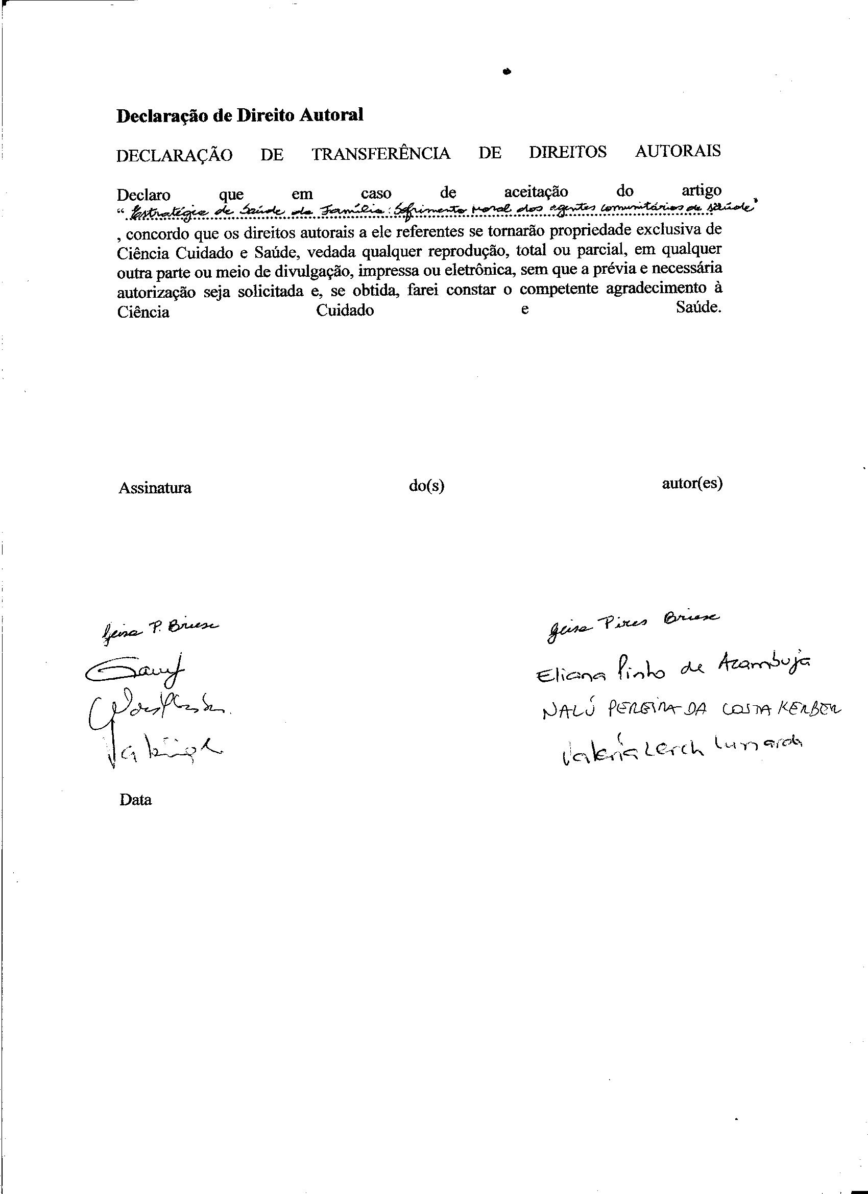 Resumo PDF - PORT PDF - ING Declaração autores Conflito Interesse Josefine Conflito Interesse Nalú Conflito Interesse Valéria Conflito Interesse Wilson Parecer CEP Comprovante taxa de submissão