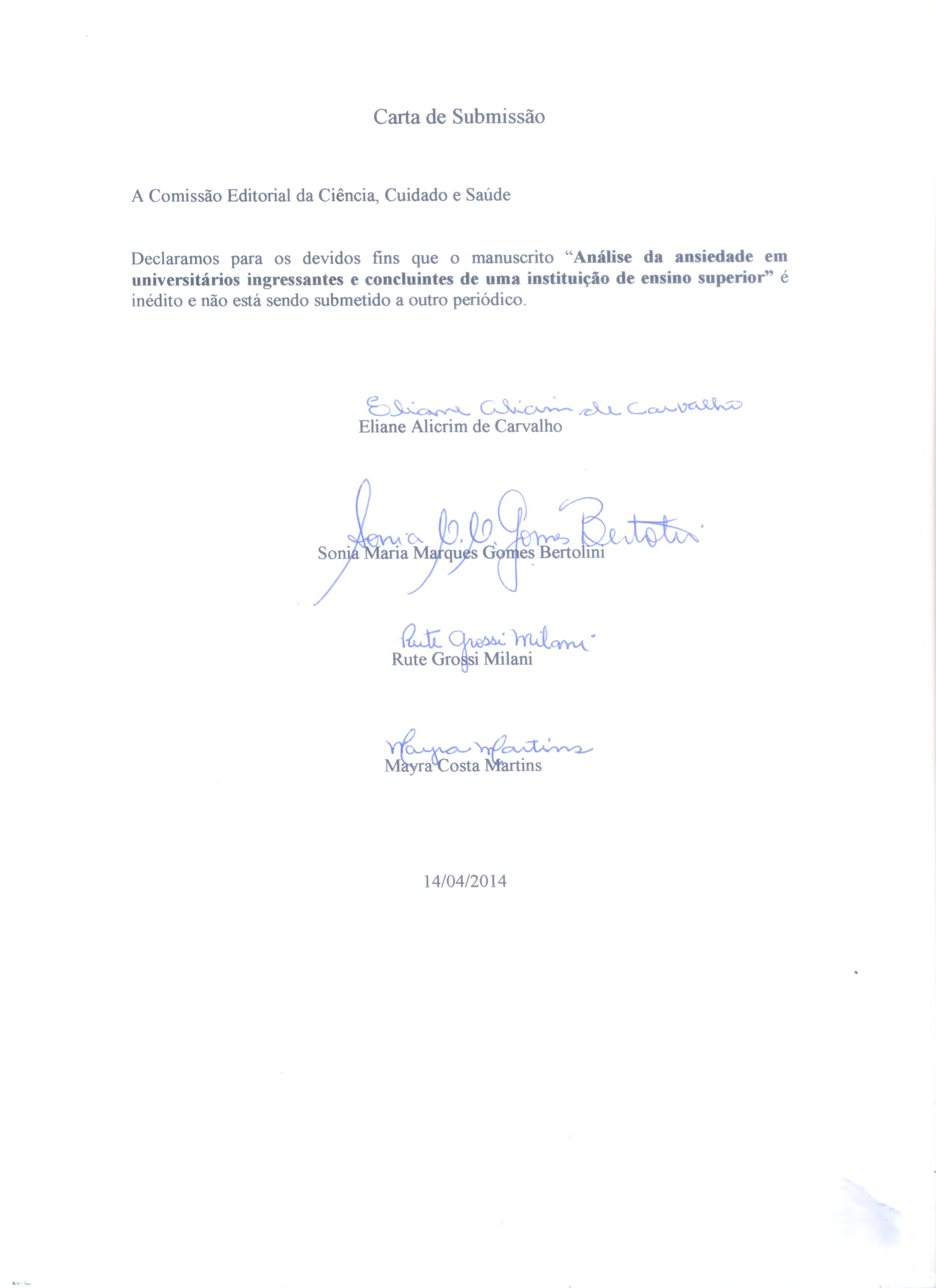 Índice de ansiedade em universitários ingressantes e concluintes de uma instituição de ensino superior/Anxiety scores in university entering and graduating students from a higher education institution