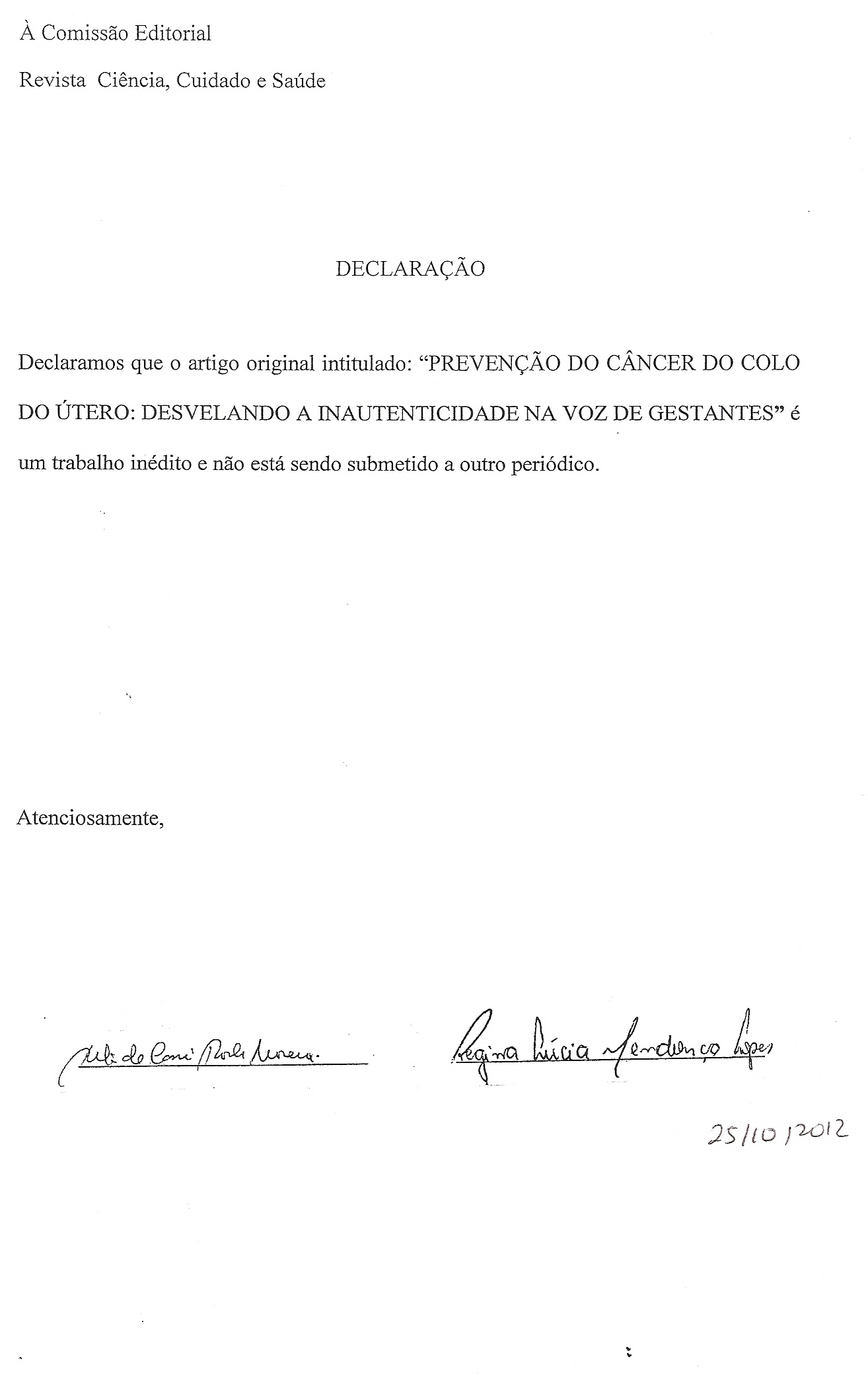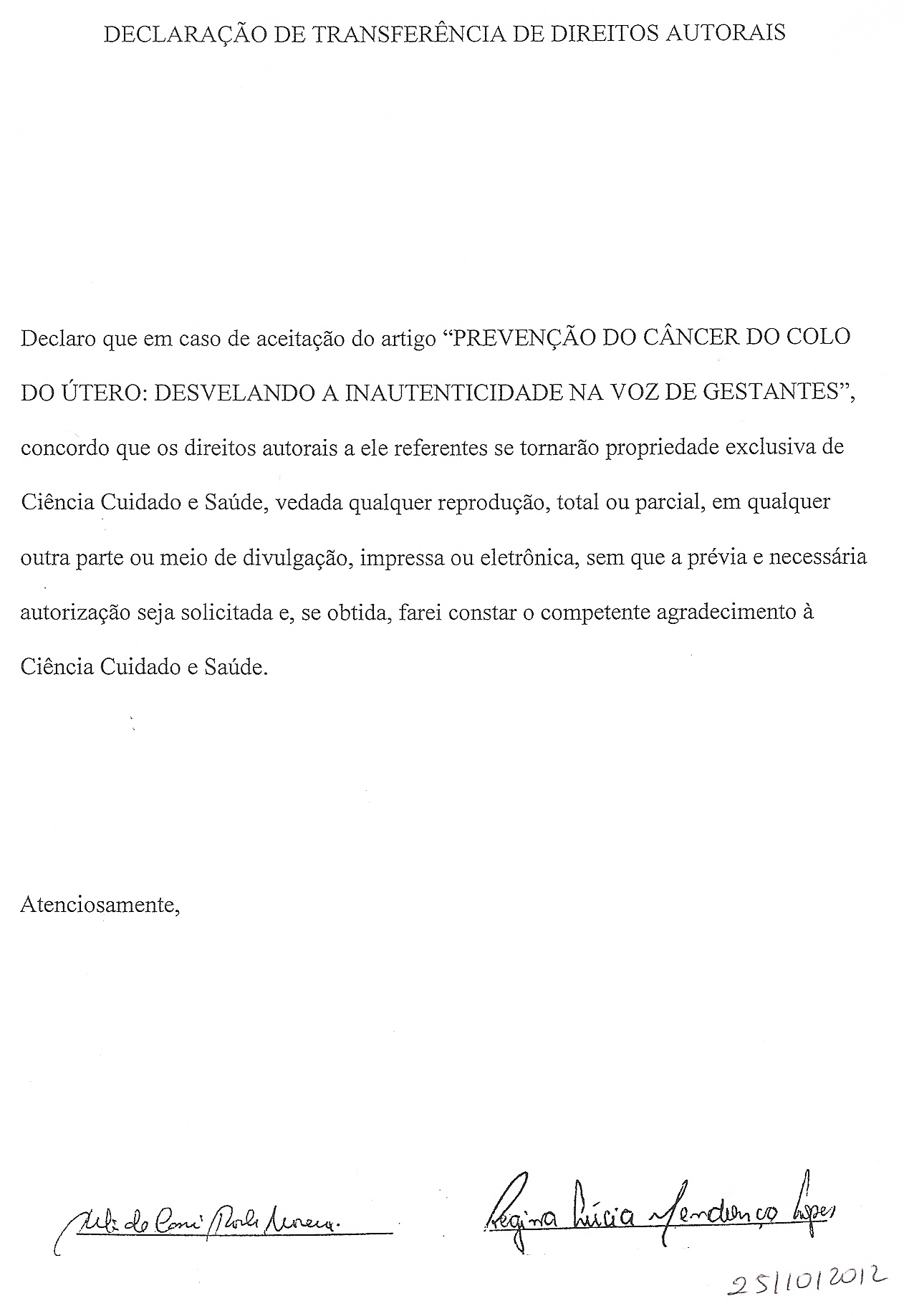 Prevenção do câncer do colo do útero: desvelando a impessoalidade na voz de gestantes / Cervical cancer prevention: unveiling impersonality in pregnant women’s voice DOI: 10.4025/cienccuidsaude.v12i4.18973