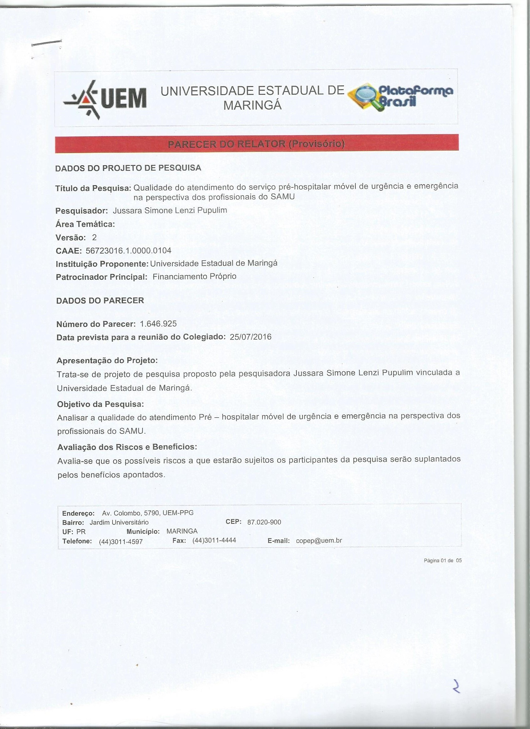 Resumo PDF - PORT PDF - ING Instrumento de Avaliação da Qualidade de Atendimento Pré-Hospitalar (AQ- APH) DECLARAÇÃO DE RESPONSABILIDADE E DE CESSÃO DE DIREITOS AUTORAIS PARECER DO RELATOR BOLETO DE PAGAMENTO PARECER CONSUBSTANCIADO DO CEP