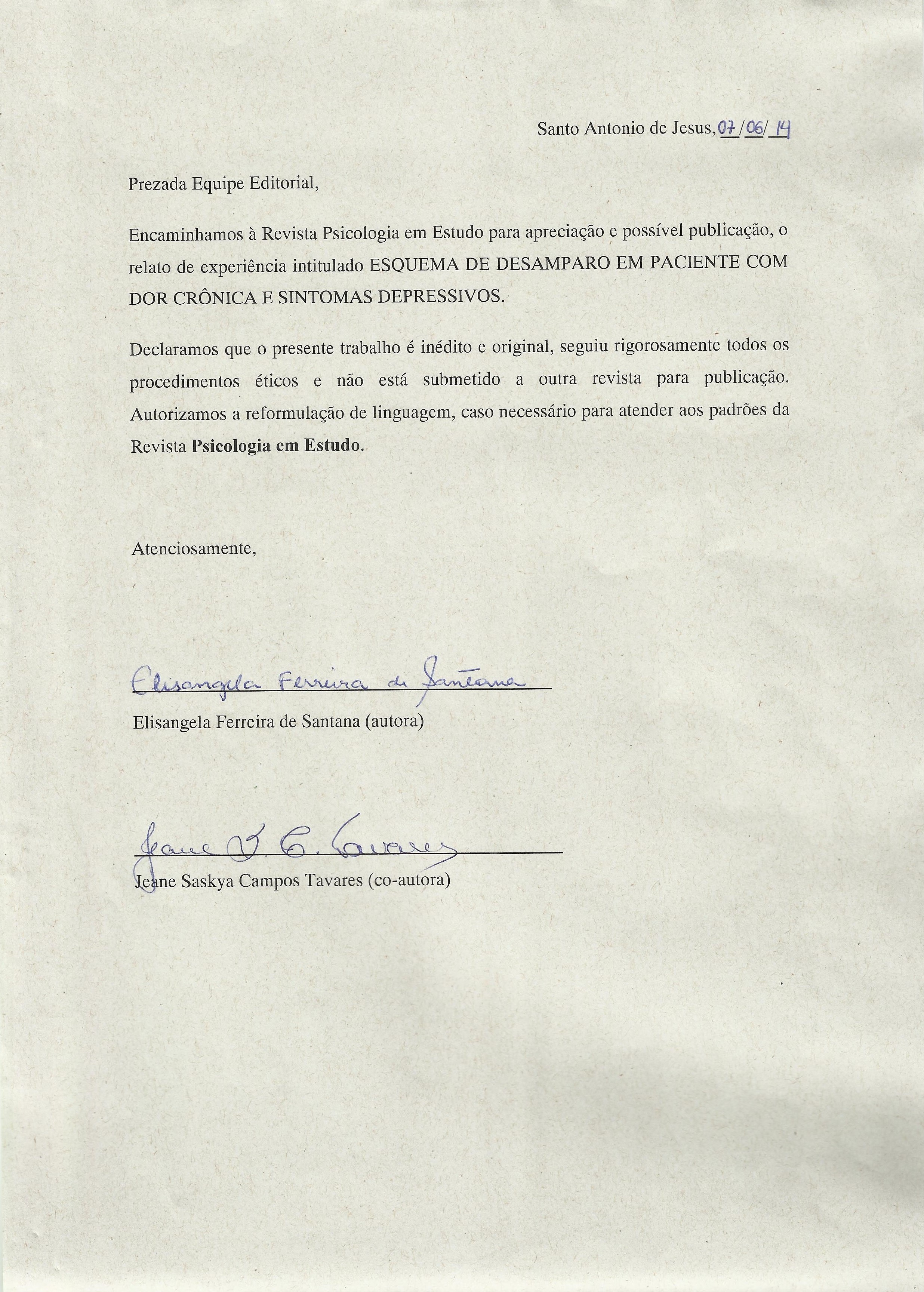 As opiniões emitidas, são de exclusiva responsabilidade do(s) autor(es). Ao submeterem o manuscrito ao Conselho Editorial de Psicologia em Estudo, o(s) autor(es) assume(m) a responsabilidade de não ter previamente publicado ou submetido o mesmo manuscrito por outro periódico. Em caso de autoria múltipla, o manuscrito deve vir acompanhado de autorização assinada por todos os autores. Artigos aceitos para publicação passam a ser propriedade da revista, podendo ser remixados e reaproveitados conforme prevê a licença Creative Commons CC-BY.
