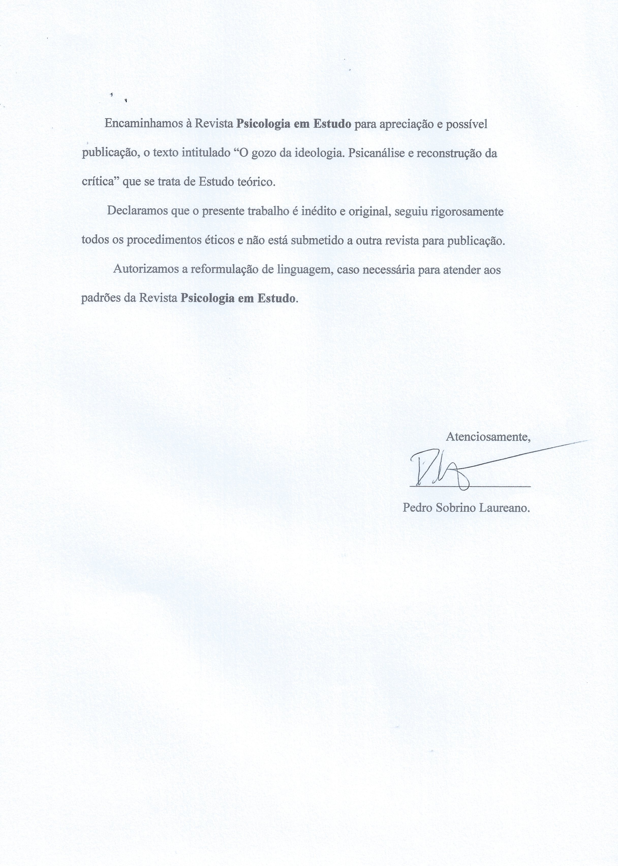 As opiniões emitidas, são de exclusiva responsabilidade do(s) autor(es). Ao submeterem o manuscrito ao Conselho Editorial de Psicologia em Estudo, o(s) autor(es) assume(m) a responsabilidade de não ter previamente publicado ou submetido o mesmo manuscrito por outro periódico. Em caso de autoria múltipla, o manuscrito deve vir acompanhado de autorização assinada por todos os autores. Artigos aceitos para publicação passam a ser propriedade da revista, podendo ser remixados e reaproveitados conforme prevê a licença Creative Commons CC-BY.