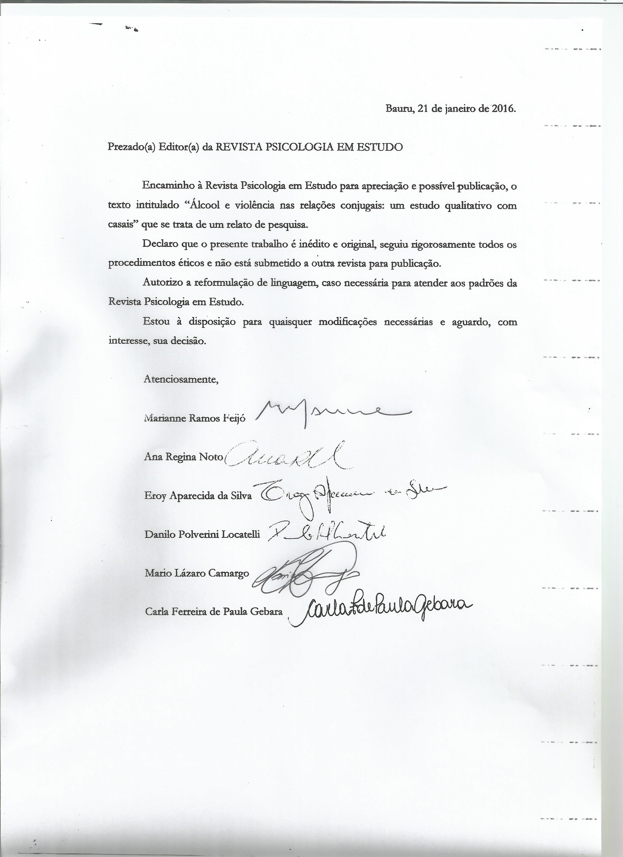 As opiniões emitidas, são de exclusiva responsabilidade do(s) autor(es). Ao submeterem o manuscrito ao Conselho Editorial de Psicologia em Estudo, o(s) autor(es) assume(m) a responsabilidade de não ter previamente publicado ou submetido o mesmo manuscrito por outro periódico. Em caso de autoria múltipla, o manuscrito deve vir acompanhado de autorização assinada por todos os autores. Artigos aceitos para publicação passam a ser propriedade da revista, podendo ser remixados e reaproveitados conforme prevê a licença Creative Commons CC-BY.