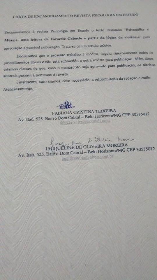 FAROESTE CABOCLO: LEITURA PSICANALÍTICA DE UMA CANÇÃO