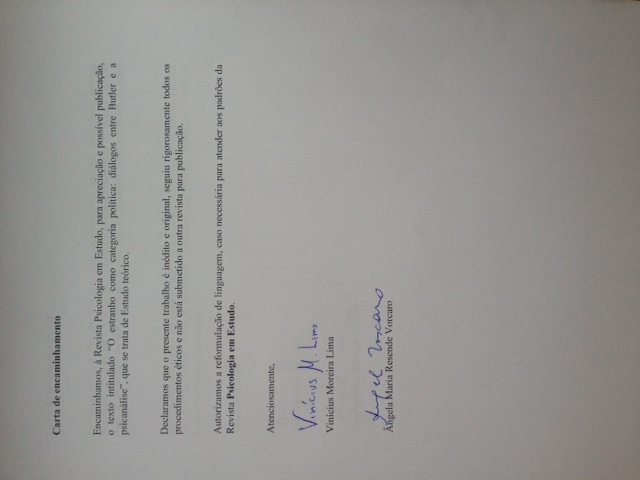 As opiniões emitidas, são de exclusiva responsabilidade do(s) autor(es). Ao submeterem o manuscrito ao Conselho Editorial de Psicologia em Estudo, o(s) autor(es) assume(m) a responsabilidade de não ter previamente publicado ou submetido o mesmo manuscrito por outro periódico. Em caso de autoria múltipla, o manuscrito deve vir acompanhado de autorização assinada por todos os autores. Artigos aceitos para publicação passam a ser propriedade da revista, podendo ser remixados e reaproveitados conforme prevê a licença Creative Commons CC-BY.